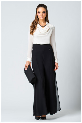 Elegant long-sleeved blouse in white. The striking detail around the neckline can be removed and worn as a bracelet. By combining it with skirts or pants from the same collection, you'll achieve the perfect outfit.