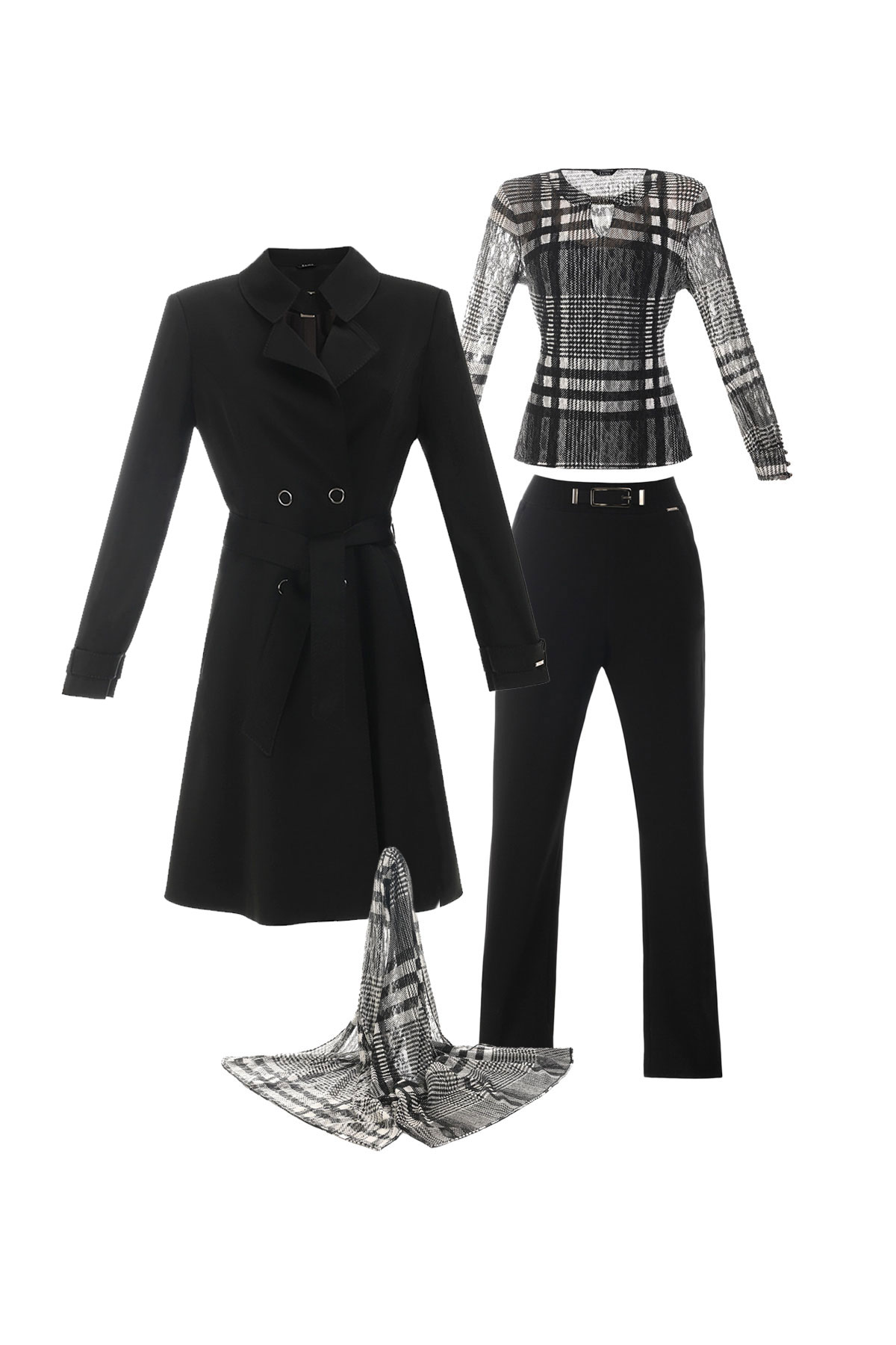 Classic black pants with an elastic waistband and a decorative buckle are ideal for combin...