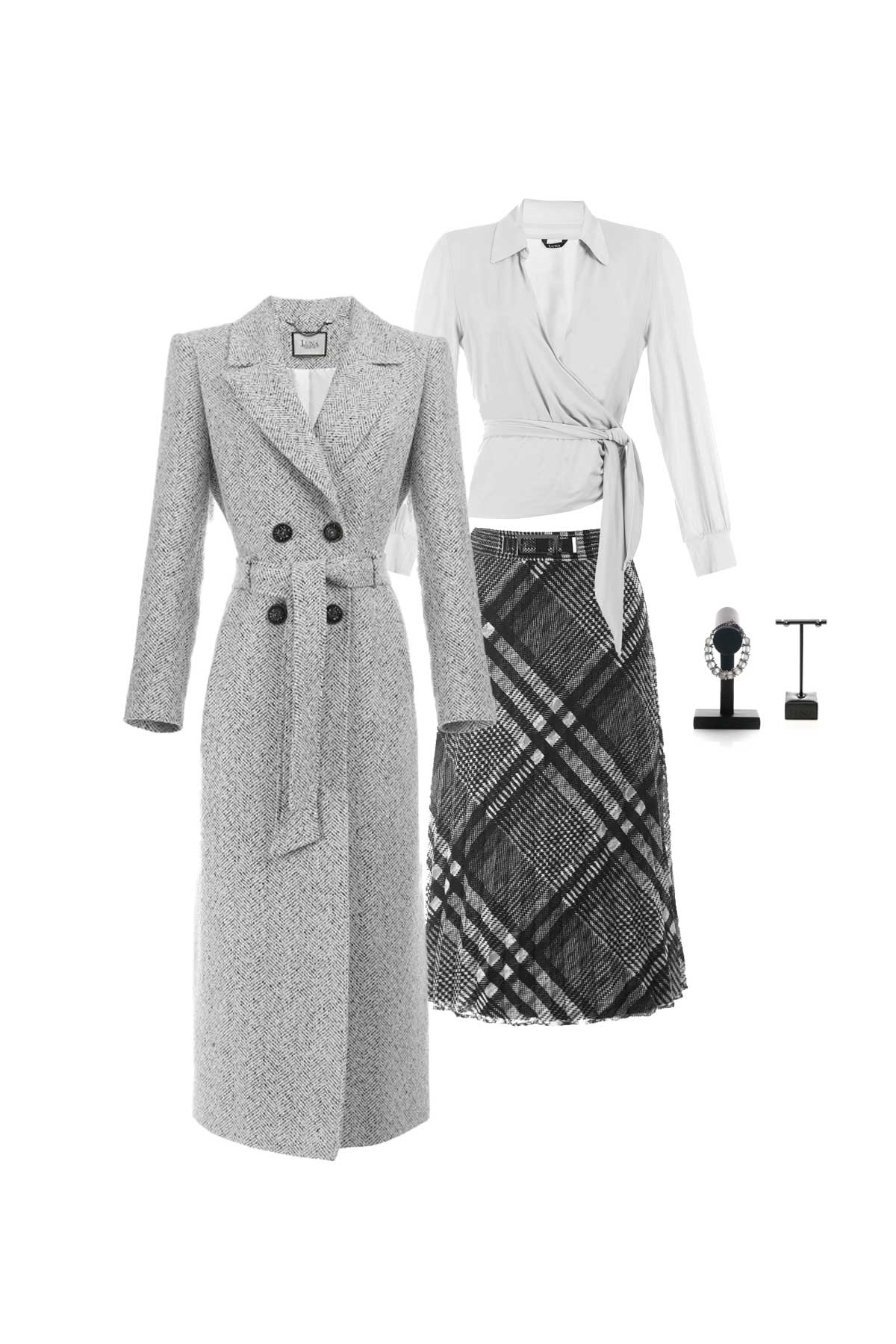 A pleated long skirt with a checkered pattern fits all body types perfectly.