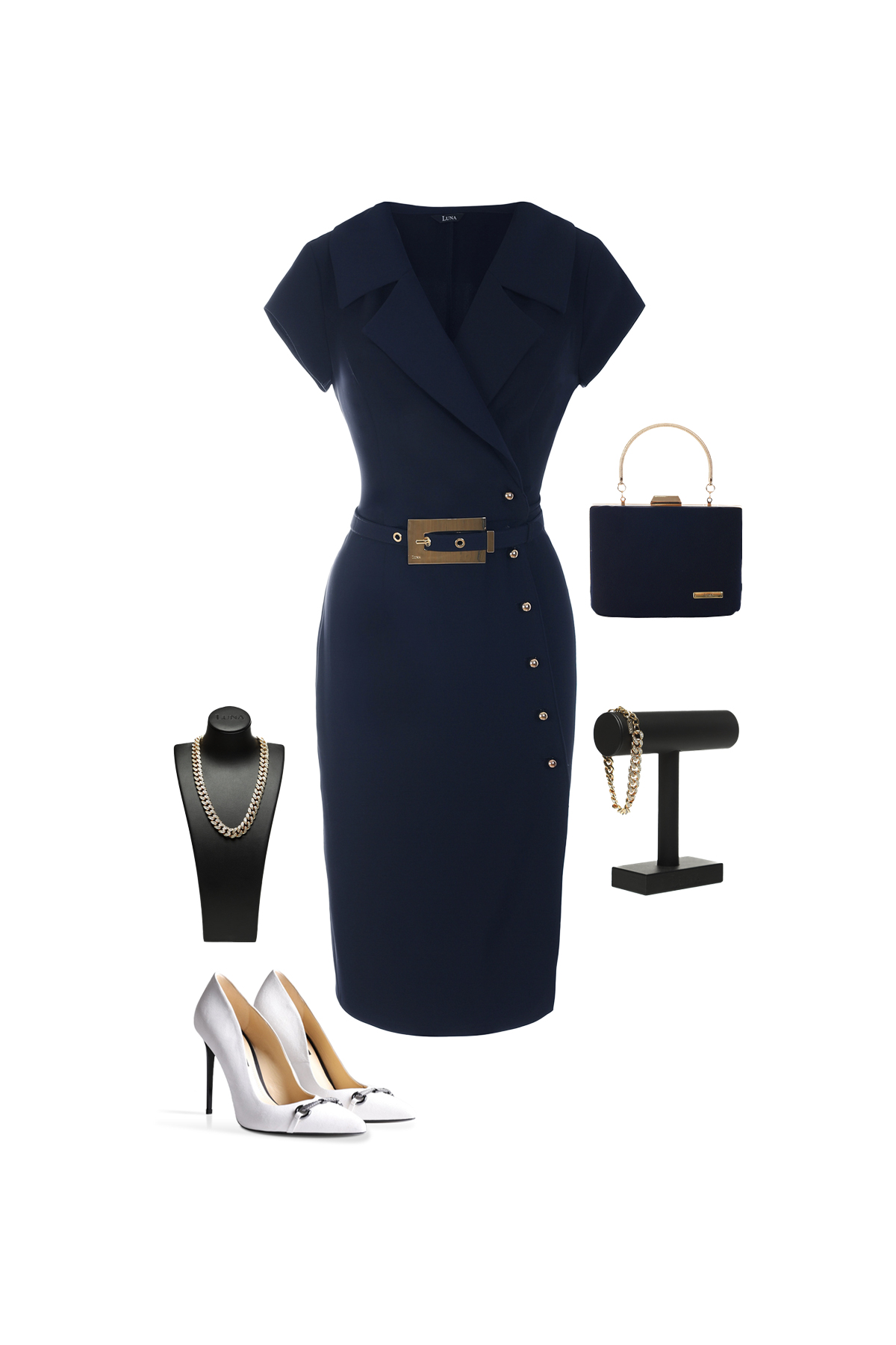 Navy wrap dress that follows the body line, the model designed to fit and flatter all body...