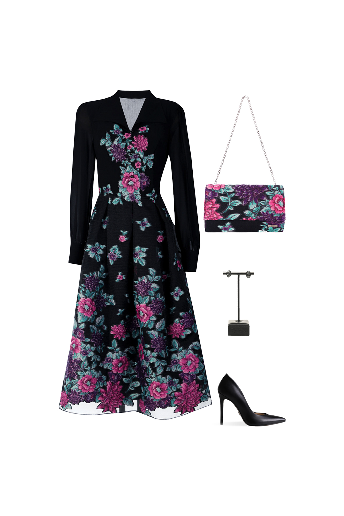 An envelope purse with flower appliqué and chain that you can remove for a completely n...