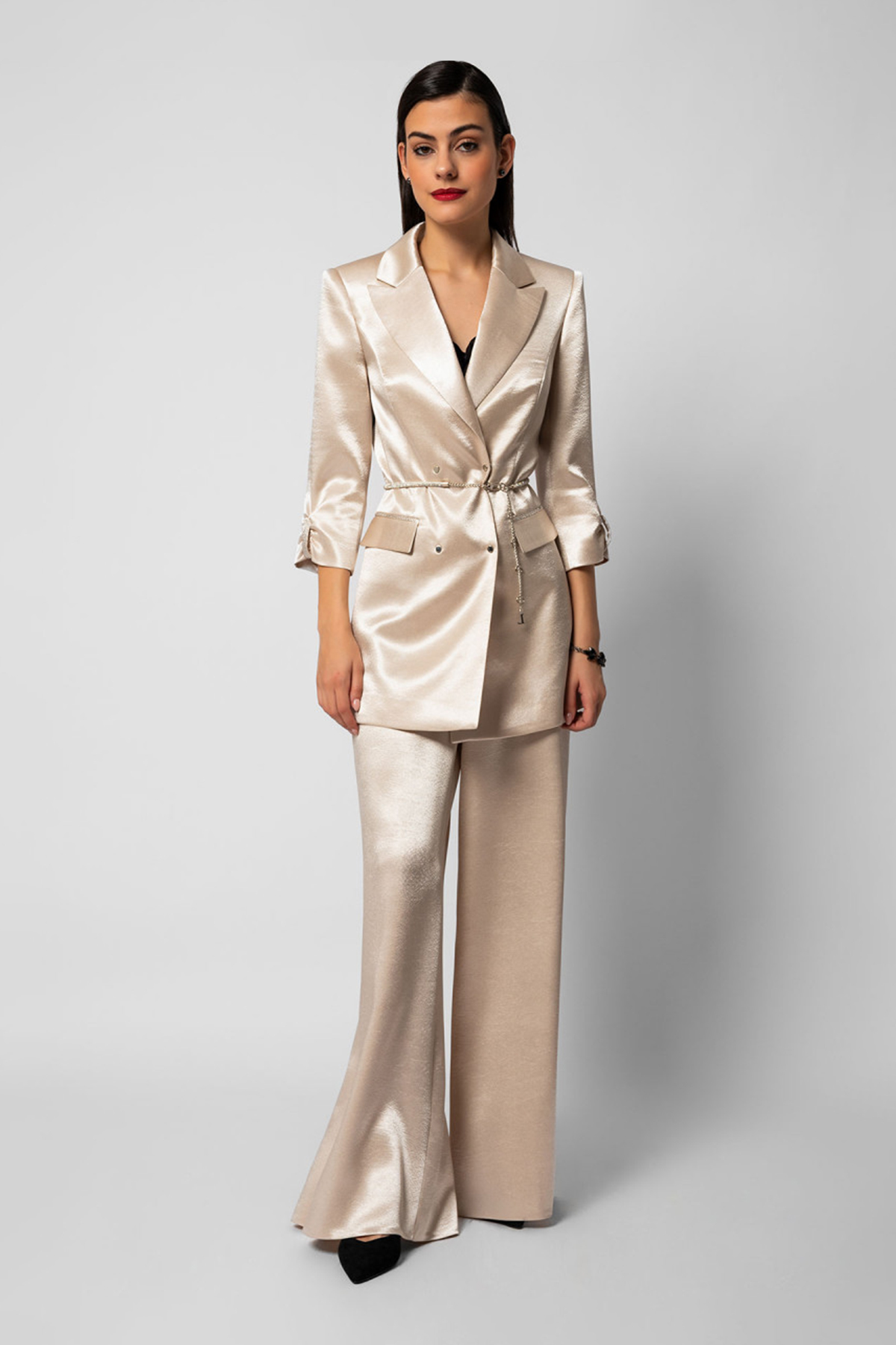Elegant beige wide-leg pantsfit all body types beautifully and visually elongate the figur...