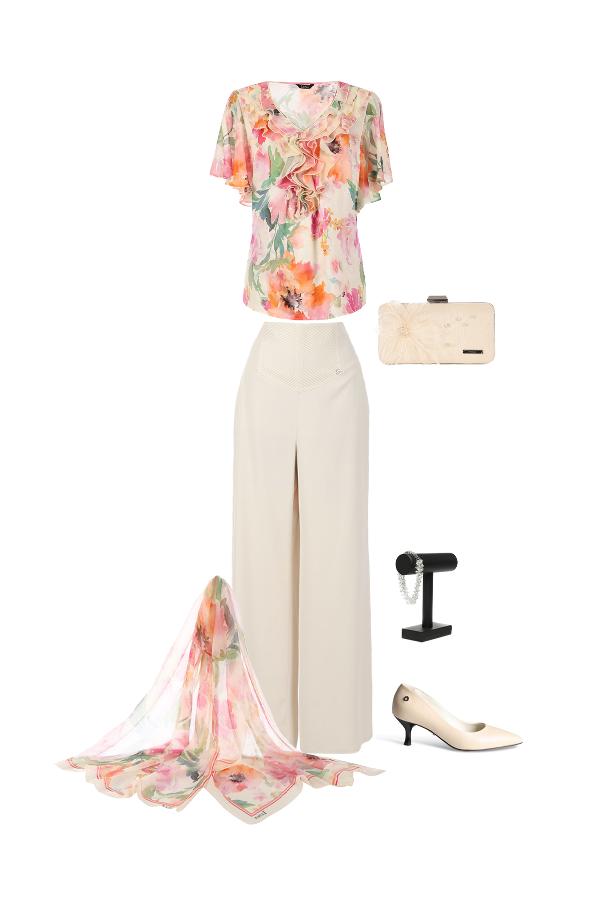 Elegant beige wide-leg pants suit all body types beautifully and visually elongate the fig...