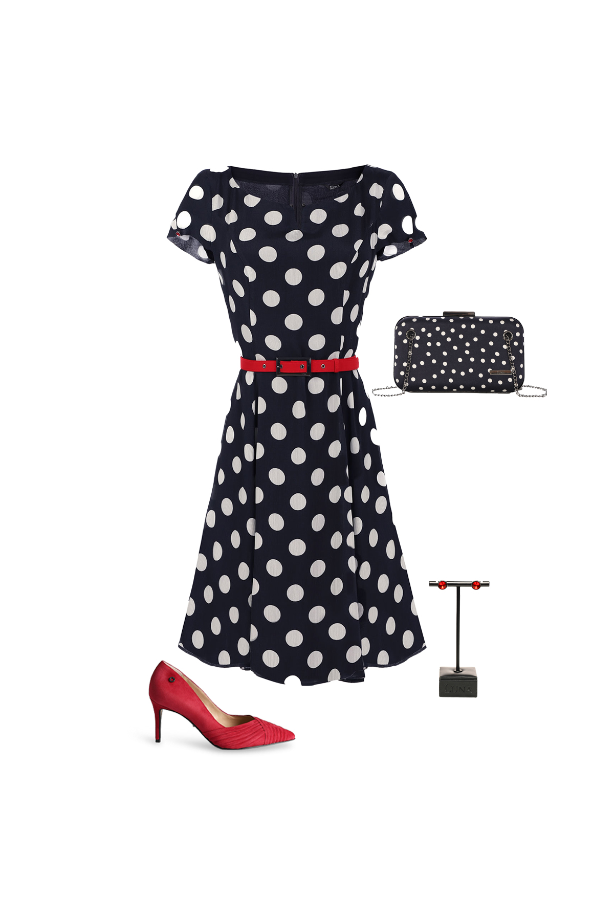 An elegant polka dot purse that will perfectly complement your outfit, adding an extra tou...