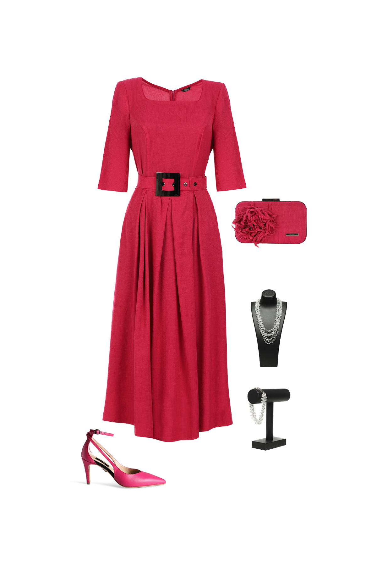 A loose-fit midi dress with short sleeves, pairs perfectly with shoes and jewelry from the...