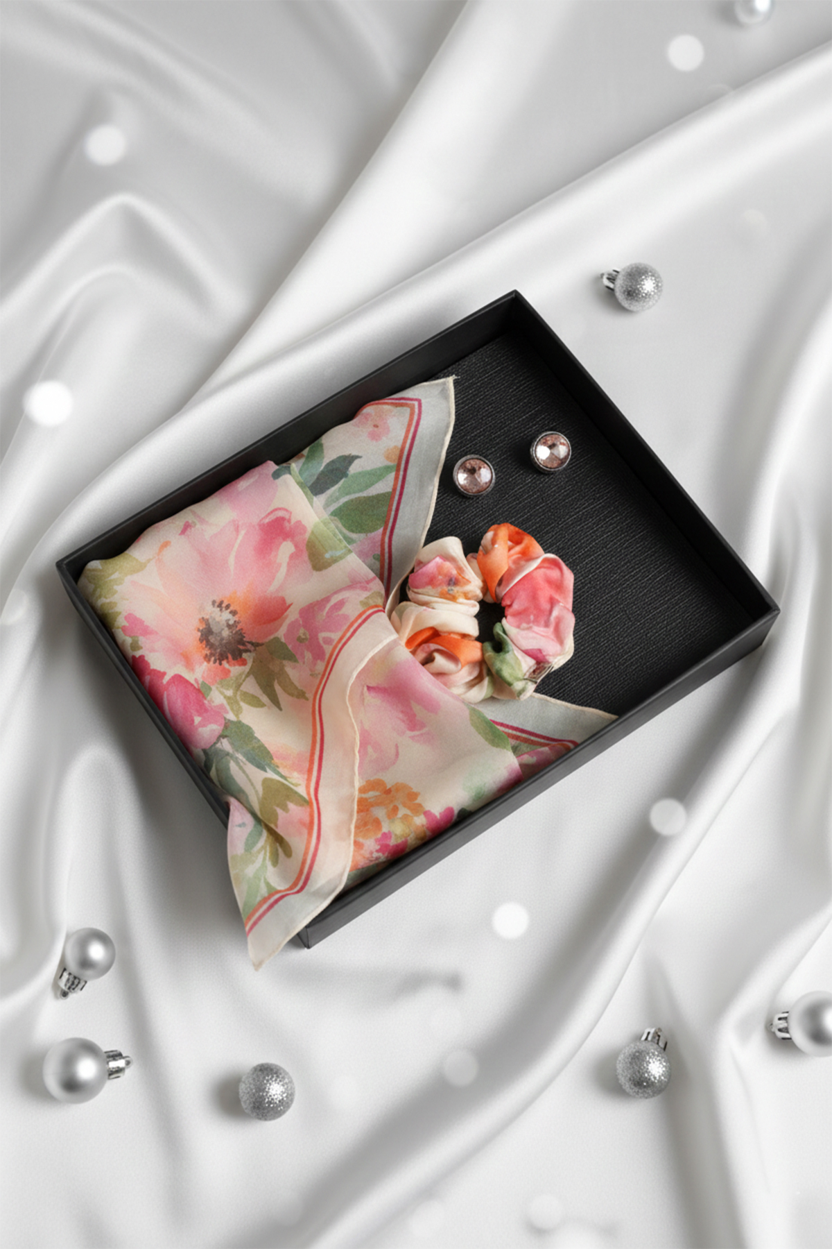 A silk scarf with a floral pattern that will enhance your outfit and add a distinctive tou...
