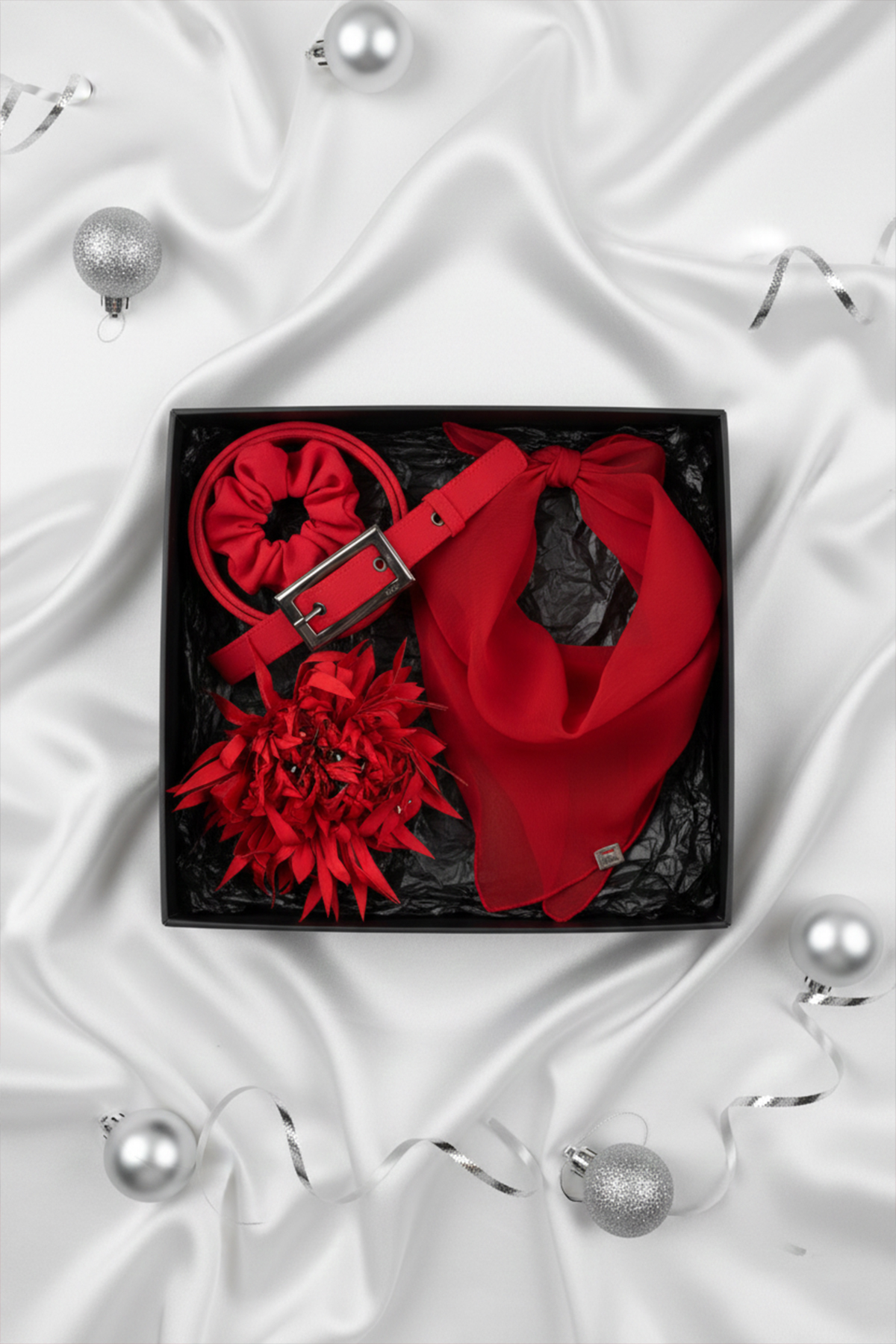 A red belt with a metal buckle that will give each outfit a unique look.