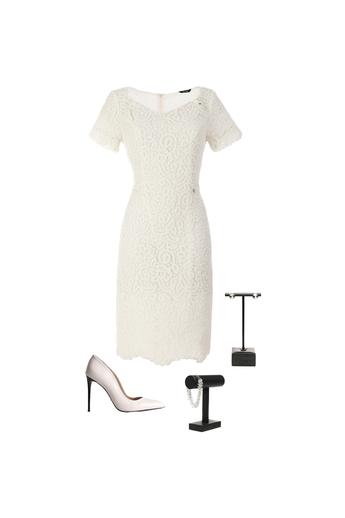 A short, fitted lace dress for special occasions that makes a strong impression.