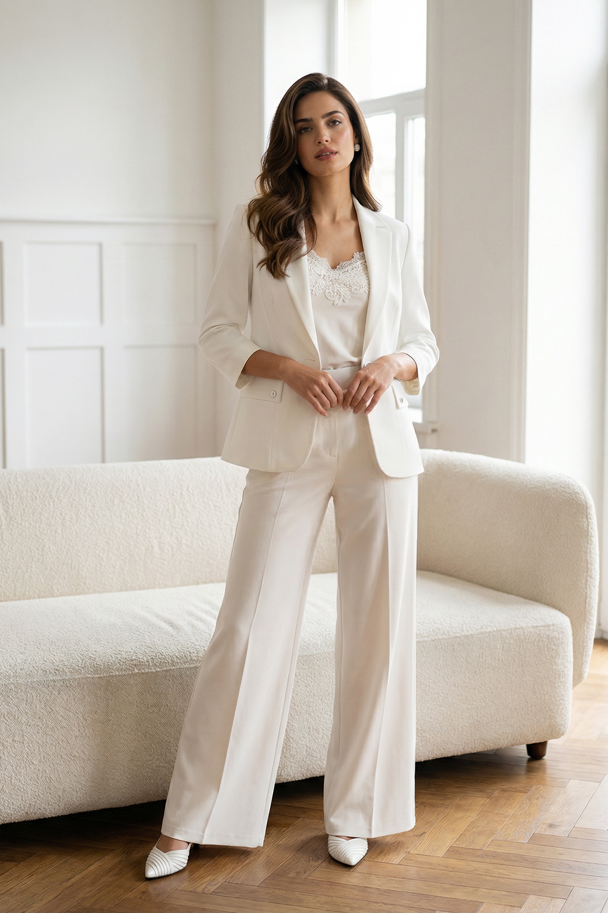 An elegant white blazer with 3/4 sleeves that will add a special touch of sophistication t...