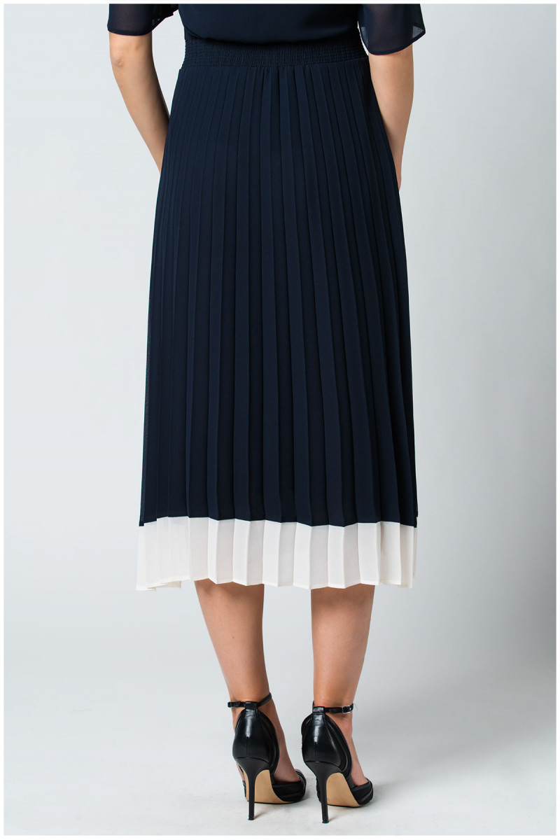Long pleated skirt with a modern cut. Enriched with an eye-catching detail around the waist, while the elastic waistband provides additional comfort. You can pair it with a blouse from the same line to achieve the effect of a dress.
