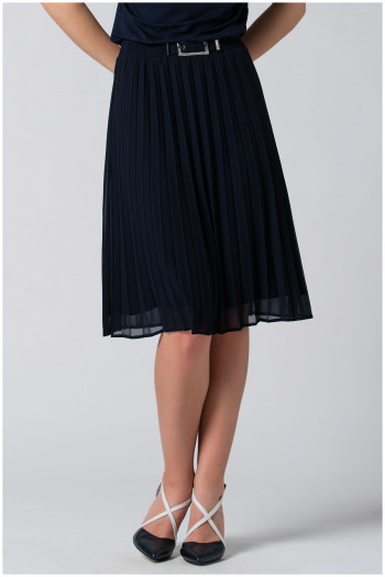 The navy blue pleated mini skirt is a perfect choice for summer days.