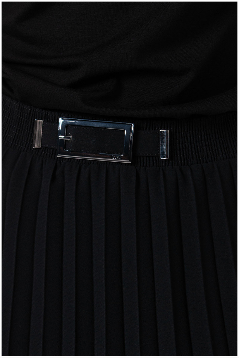 This short pleated skirt is made from lightweight material and lined with viscose fabric, making it very comfortable to wear. The stretchy waistband with a decorative belt buckle provides additional comfort.