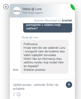 U našem LUNA online shop-u, uvek možete računati na pomoć i podršku prilikom kupovine, na iskren savet ili iskusan predlog. Članovi LUNA tima uvek će vam rado izaći u susret, kakvu god nedoumicu ili pitanje da imate.
