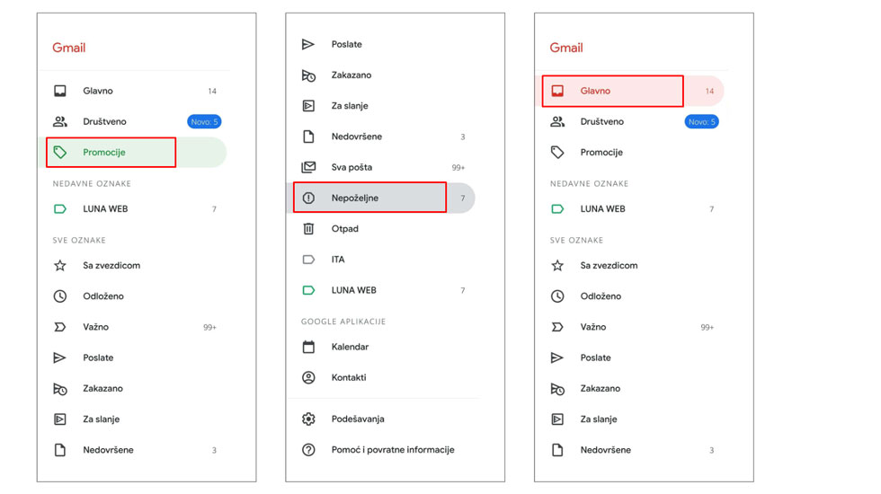 VAŽNA napomena: Ukoliko, nakon što ste se prijavili na naš newsletter, primetite da ne dobijate naš mail obaveštenja, pogledajte svoju poštu u polju „Spam“ (Nepoželjno) ili „Promotions“ (Promocije) i ukoliko je primljeni mail u tom odeljku, samo izvršite promenu i prebacite ga u Inbox (Primljene poruke). Na ovaj način ćete postići da Vam redovno stižu novosti iz LUNE:
