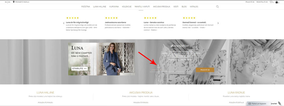 Takođe, u dnu početne stranice prilikom posete sajta primetićete polje u kome stoji newsletter obaveštenje za prijavu putem koga se svakog trenutka možete prijaviti, ukoliko do sada niste bile u prilici.