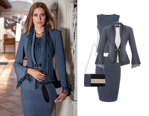 Prilikom odabira outfita za posao često bira suknju i sako u istom ili idealno uklopivom dezenu, kao i kaput za celokupan stilski efekat, a kao komad koji je obavezan u njenom ormaru, navodi crnu haljinu – idealnu za poslovne i druge neformalne prilike.