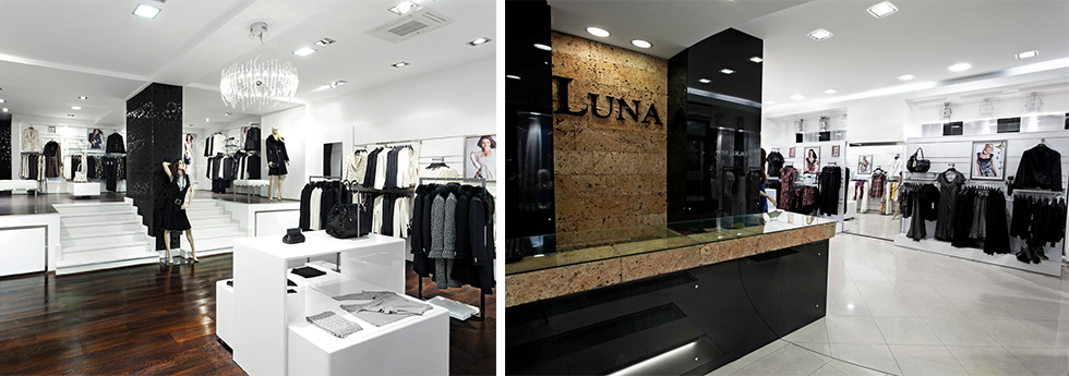 Stilizovani izlozi LUNA radnji privući će vašu pažnju kao nagoveštaj onoga što možete da očekujete u LUNA radnjama. Dočekaće vas profesionalno, ljubazno i prijatno osoblje koje će vam rado izaći u susret i pomoći vam pri izboru idealnog modnog komada ili celokupnog outfita iz LUNA kolekcije. Osim praktičnih saveta, možete se osloniti i na modne savete iskusnog osoblja, usmerene na vaš stil.
