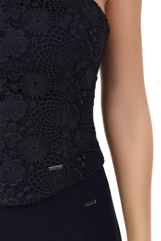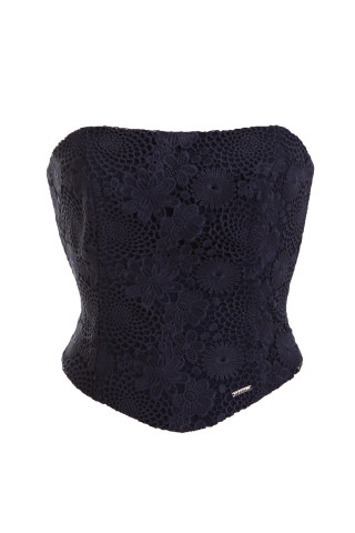 Korset na pertlanje sa leđne strane napravljen od čipke sa cvetnim motivima. Odličan je za sve svečane prilike i lako se uklapa kako uz suknje tako i uz pantalone.