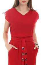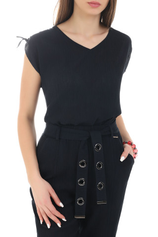 Tunika je izrađena od viskoze sa elastinom što je čini veoma udobnim odevnim komadom za nošenje i u toplim danima. Model je klasičan i lako se kombinuje sa različitim modelima suknji i pantalona. Oplemenjen je detaljem na ramenu u vidu trake koju možete po želji skupiti. Lagana tunika je idealan izbor za poslovne autfite ili ležerne odevne kombinacije.