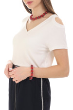 Moderna bluza od viskozne pletenine pruža savršen osećaj prilikom nošenja zahvaljujući veoma mekanom viskoznom materijalu sa elastinom. Njen klasični kroj obogaćen je otvorima na ramenima, pa ovaj model pruža i dozu atraktivnosti. Velika moć rastegljivosti materijala pogodna je za sve građe i oblike tela, čemu pogoduje i ležerniji kroj. Pogodna je kako za opuštenije tako i poslovne prilike i lako se uklapa u sve stilove.