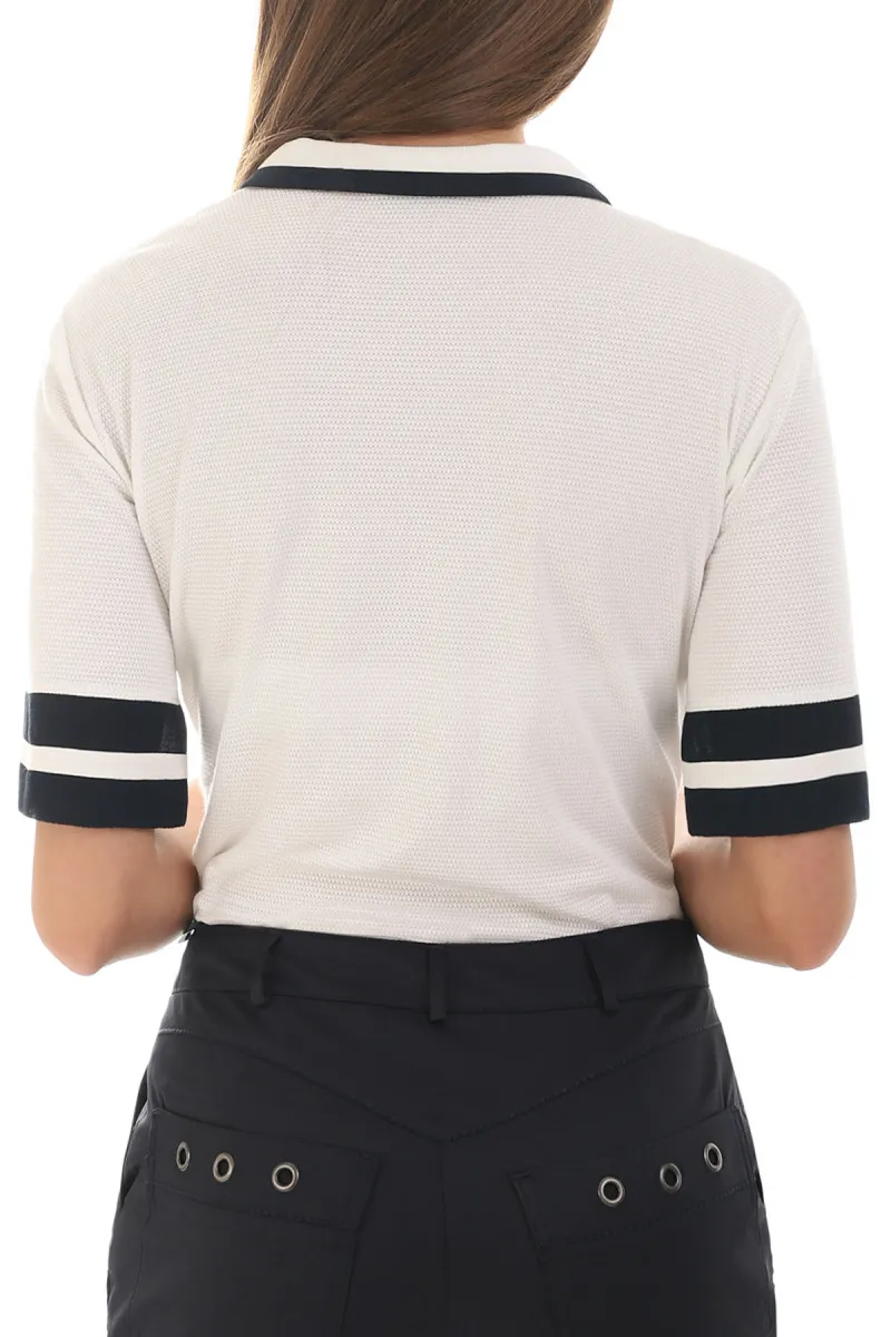 Majica sa kragnom izrađena je od viskozne tkanine sa elastinom i idealna je za tople dane. Model prati liniju tela i pristaje svakom tipu građe. Zahvaljujući dizajnu, možete je na lak način kompletirati kako sa sportskim tako i klasičnijim modelima. Popularna "Polo" majica idealna je za kreiranje modernijeg stajlinga i uklapa se kako uz ležerniju garderobu tako i uz formalnu poslovnu, pa je možete nositi i ispod sakoa, uklopljenu čak i uz klasične poslovne pantalone ili suknje.