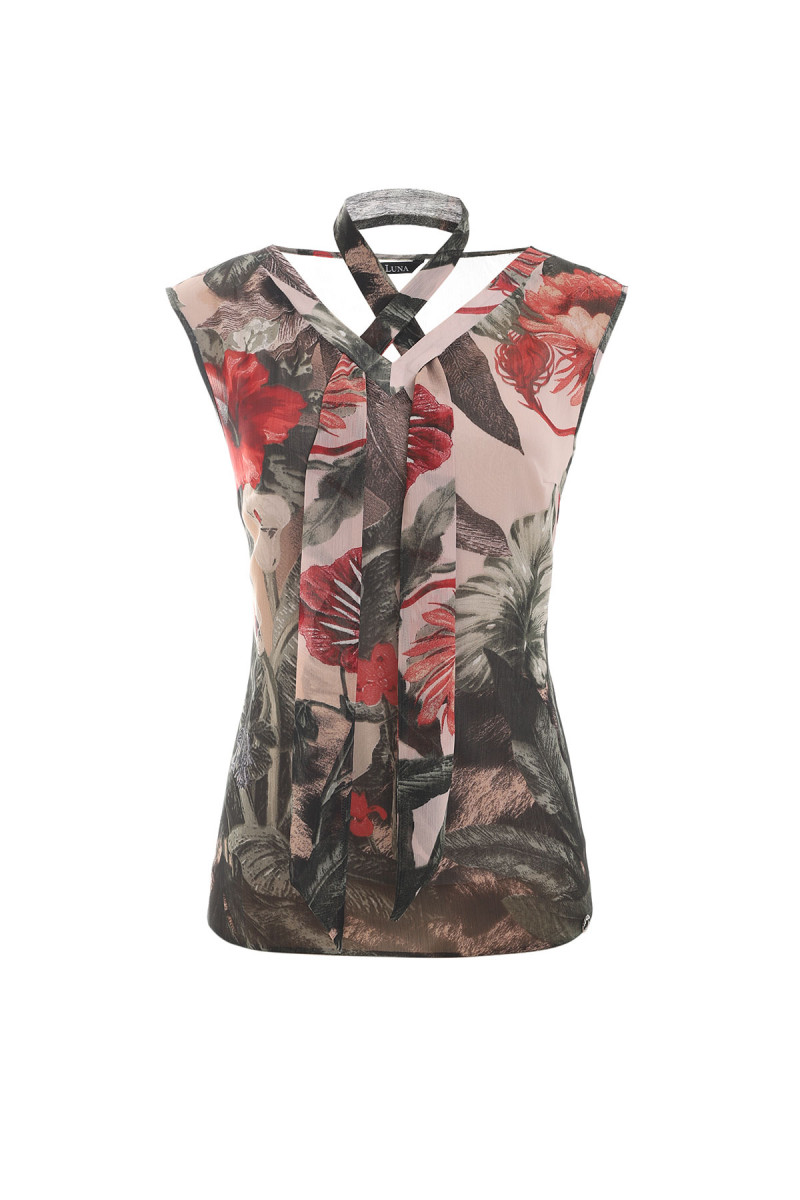 Lepršava tunika bez rukava u floralnom dezenu sa trakom koju možete stilizovati na različite načine.