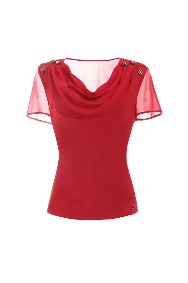 Efektan LUNA set koji se sastoji od dva odvojena dela - viskozne majice i prozračne bluze sa aplikacijom na ramenima. Sa ovim jedinstvenim komadom lako možete da kreirate autentične outfite koji magnetski privlače pažnju. Predlažemo Vam da set uparite sa plisiranim pantalonama iz nove kolekcije.