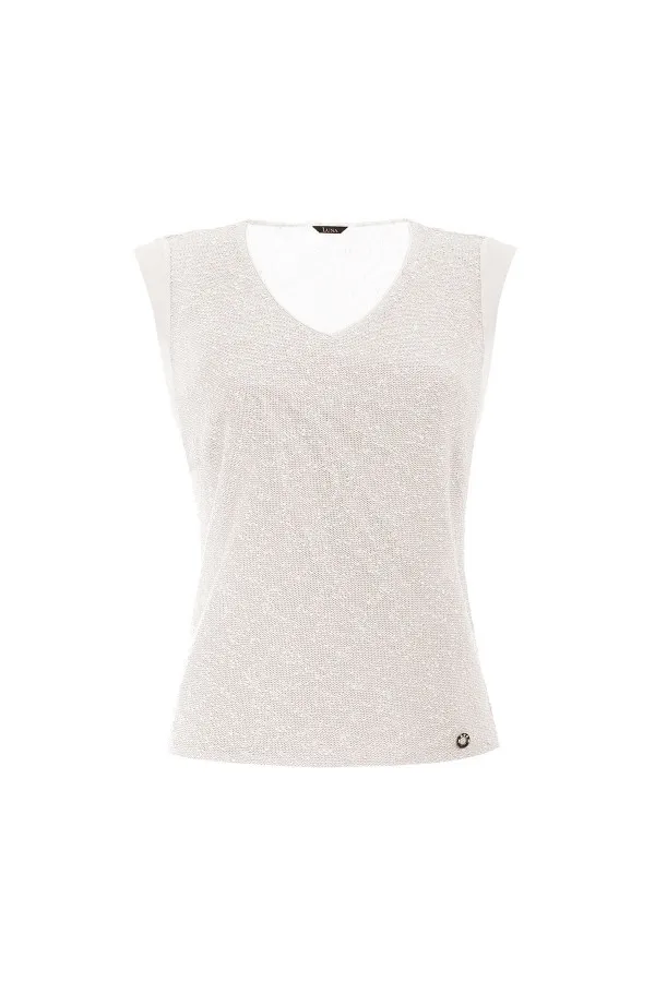 Elegantna proznačna bluza od pletenine. Odličan je bazični komad u kreiranju svih outifta. Lako se kombinuje sa suknjama i pantalonama iz letnje kolekcije.