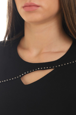 Elegantna crna bluza sa belim obrubom i suptilnim sjajem pruža lagan, prijatan osećaj i...