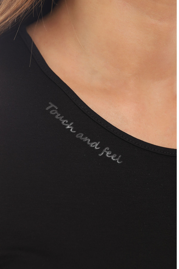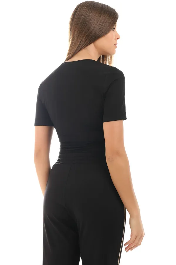 Crna majica kratkih rukava je odličan basic komad za kreiranje različitih outfita. Izrađena je od viskoze sa visokim procentom elastina što je čini veoma prijatnom za nošenje i tokom najtoplijih dana.