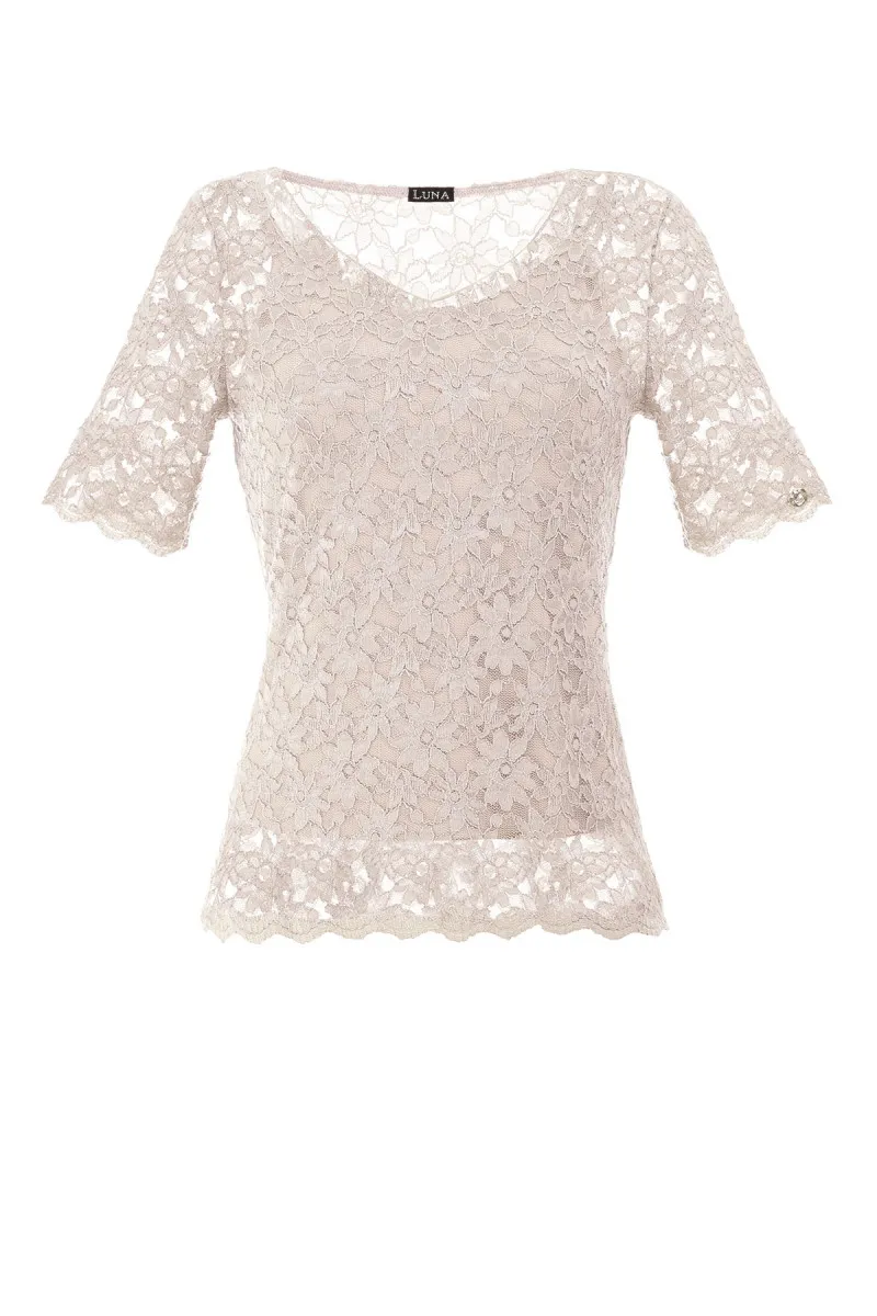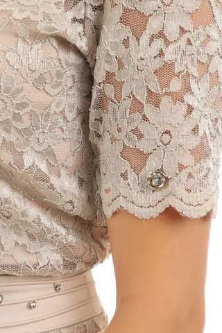 Svečan set koji se sastoji iz dva dela. Gornji deo čini fina čipka sa cvetnim detaljima, a za komforan osećaj prilikom nošenja tu je viskozna podmajica. Odlično se kobinuje sa pantalonama i suknjama iz nove kolekcije, ali i sa ostalim modelima.