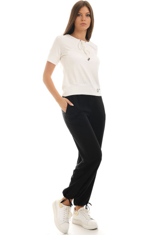 Elegantna crna bluza sa belim obrubom i suptilnim sjajem pruža lagan, prijatan osećaj i...