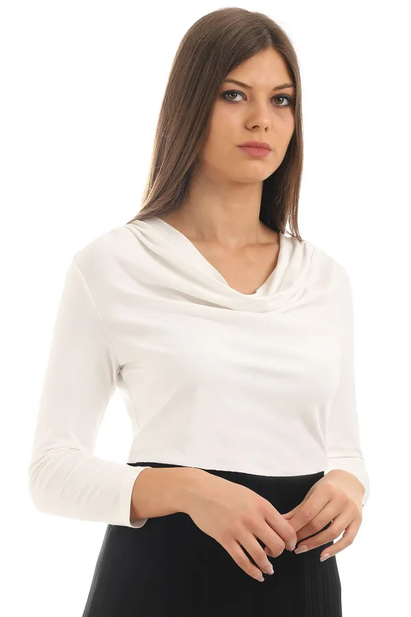 Klasična bluza sa naborom u zoni dekoltea pogodna je za mnoge prilike, od poslovnih, do svečanih i svakodnevnih. Napravljena od elastin viskoze, ova bluza ima veliku moć rastegljivosti, pa je lako mogu nositi i osobe različitih građa.