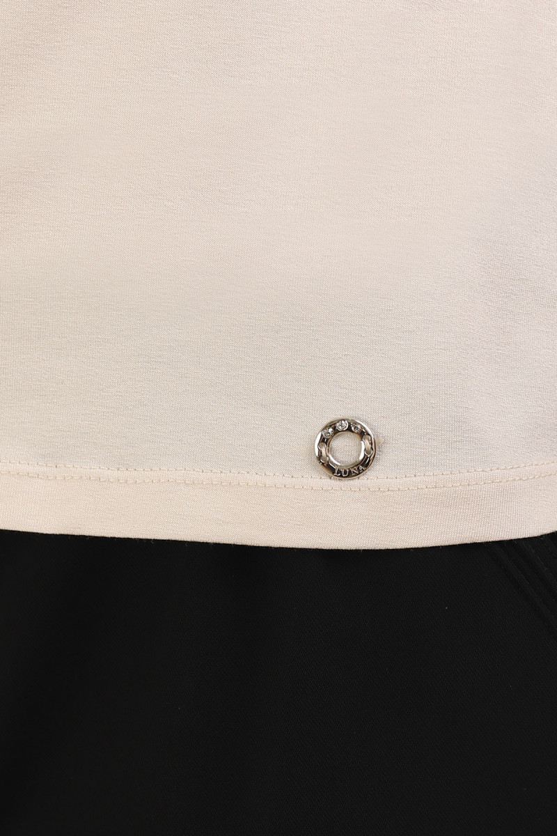Majica od viskoze sa elastinom upotpuniće svaki Vaš outfit i dati mu notu autentičnosti zahvaljujući efektnom detalju u predelu grudi. Velika moć rastegljivosti i ležerniji kroj čine je pogodnom za sve tipove građe tela. Odličan je basic komad koji se lako kombinuje sa mnogim LUNA modelima.