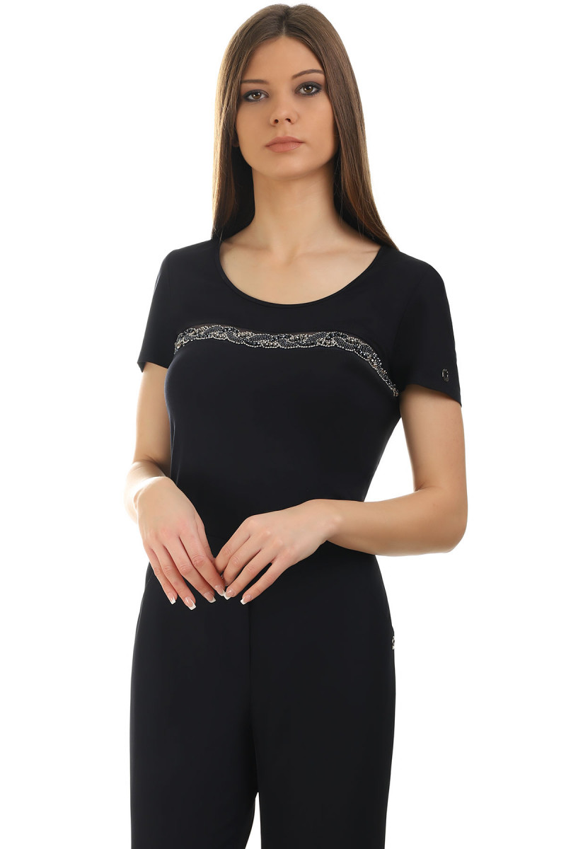 Majica koju možete nositi i u svečanim prilikama, ali je možete kombiniovati i u ležernijem stilu. Viskoza u kombinaciji sa elastinom donosi potpun komfor prilikom nošenja, čak i u najtoplijim danima. Detalj koji se horizontalno prostire preko gornjeg dela majice, dodaje notu sofisticiranosti. U kombinaciji sa pantalonama iz iste linije dobićete savršeno stilizovan look.