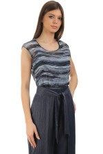 Ženstveni set koji se sastoji iz dva dela. Lepršavi gornji deo unosi dozu elegancije, dok viskozna podmajica sa elastinom pruža maksimalnu udobnost i prijatnost prilikom nošenja. Moderan geometrijski dizajn će se savršeno uklapati u Vaše letnje outfite.
