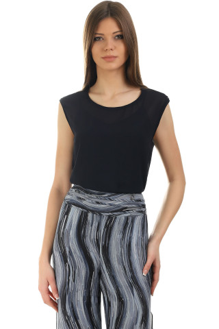 Elegantna crna bluza sa belim obrubom i suptilnim sjajem pruža lagan, prijatan osećaj i...