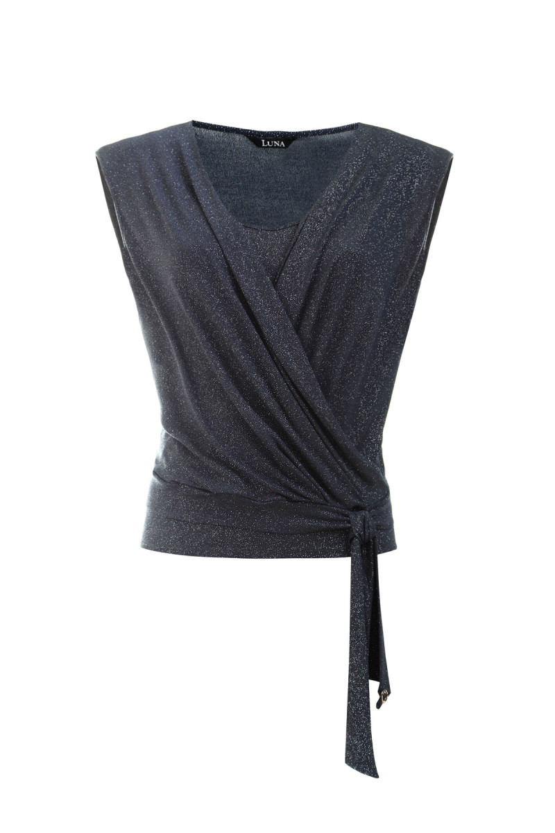 Dvodelni set u plavoj boji sa svetlucavim premazom idealan je za kombiniovanje sa Luna pantalonama.