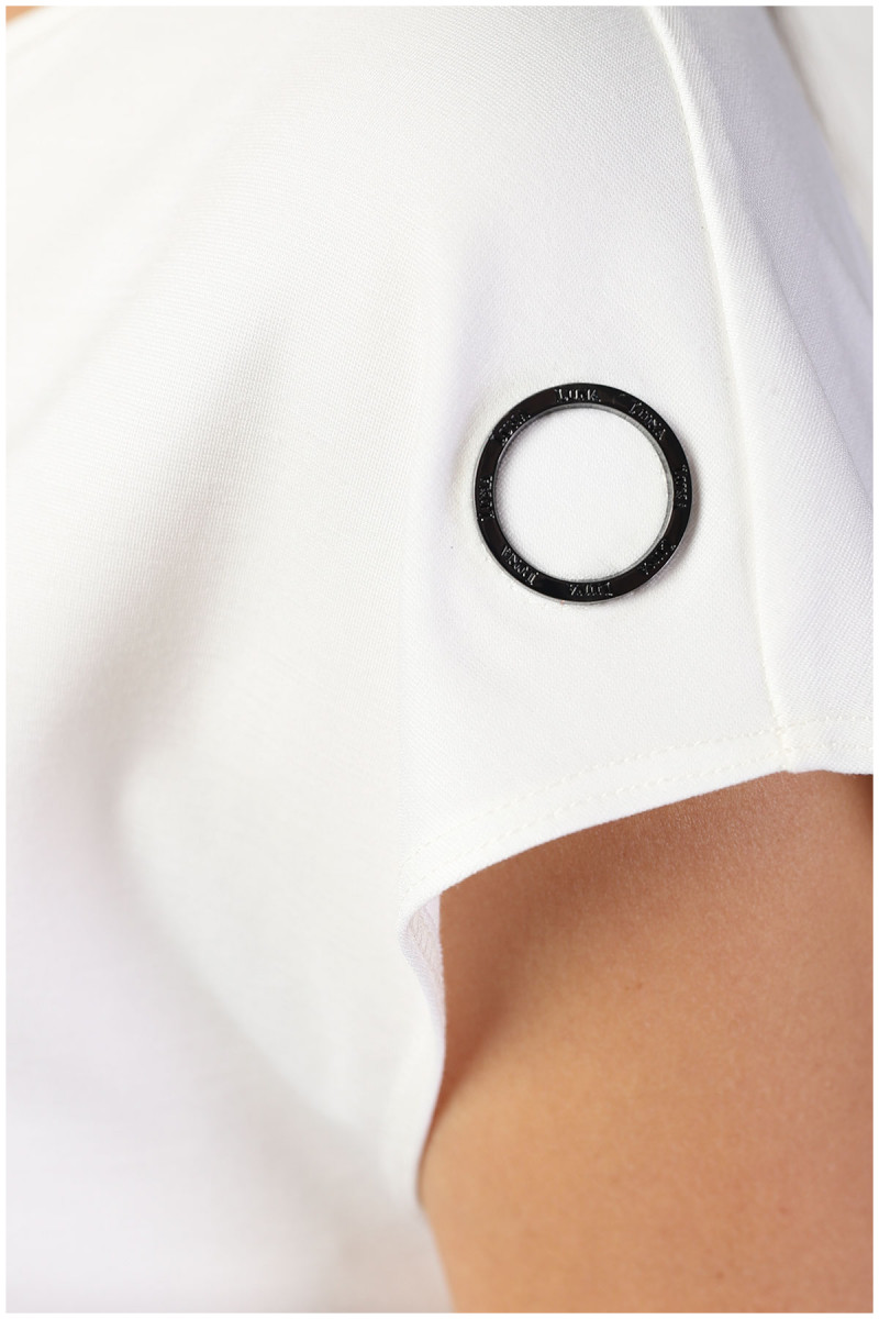 Bela viskozna majica sa crnom bordurom na donjem delu. Blago strukirani kroj pristaje svim tipovima građe. Jednostavno je možete kombinovati sa Luna pantalonama, trenerkama i suknjama i kreirati savšen outfit za odlazak u šetnju, na trening ili aktivni vikend.