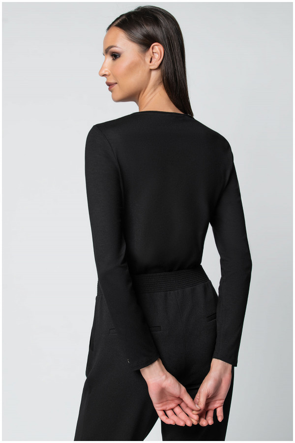 Elegantna bluza u antracit-crnoj boji preklopnog kroja sa suptilnim naborima i mekom, e...