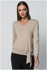 Elegantna bluza u bež boji preklopnog kroja sa suptilnim naborima i mekom, elastičnom t...