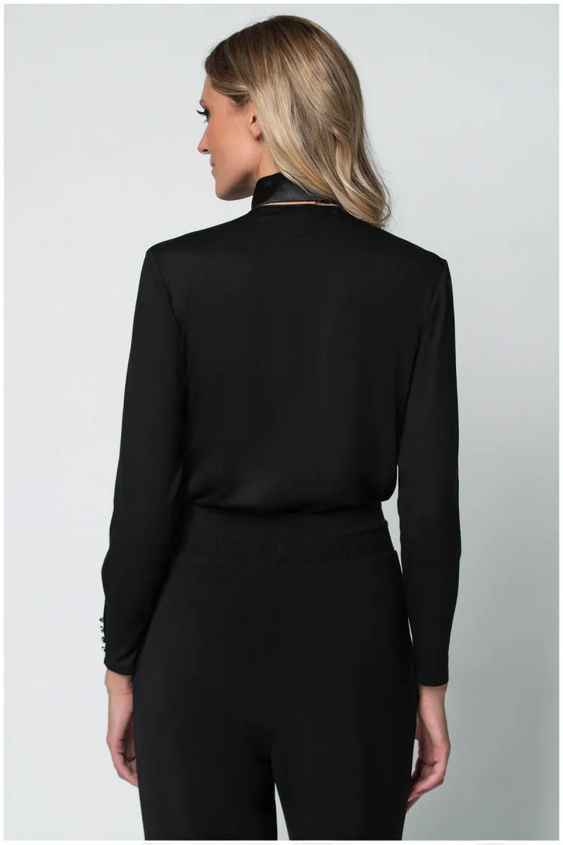 Elegantna crna bluza sa belim obrubom i suptilnim sjajem pruža lagan, prijatan osećaj i...