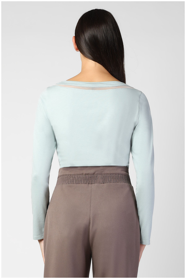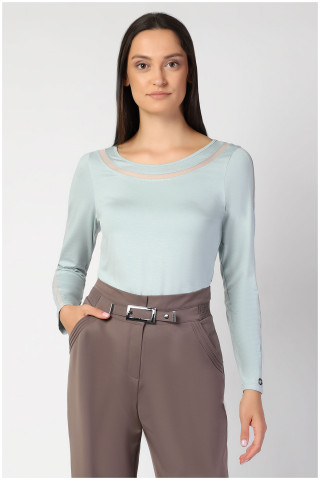 Viskozna majica sa dugim rukavima ukrašenim transparentnom trakom. Klasičan kroj pristaje svakoj dami i odlična je baza za kreiranje outfita. Prirodan materijal sa elastinom vrlo je prijatan na koži.