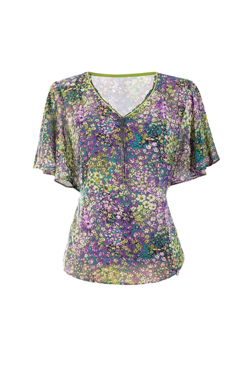 Jednobojna bluza sa kratkim lepršavim rukavima pogodna je za svakodnevne, ali i elegant...
