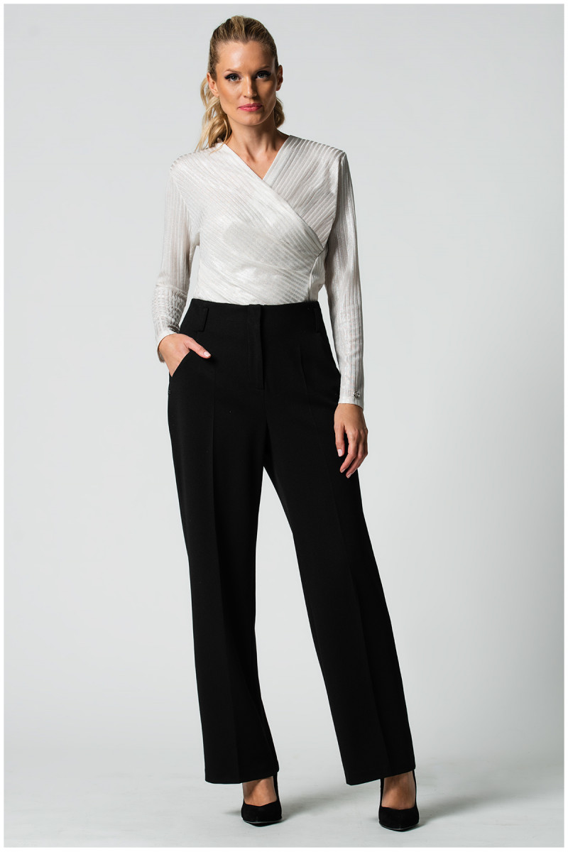 Elegantna bluza u antracit-crnoj boji preklopnog kroja sa suptilnim naborima i mekom, e...