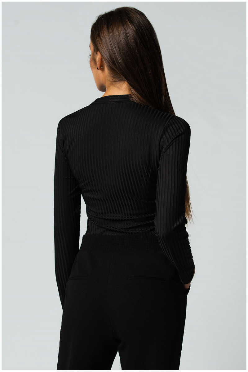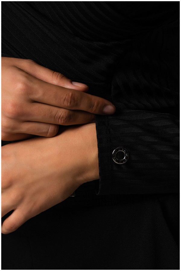 Elegantna crna bluza sa belim obrubom i suptilnim sjajem pruža lagan, prijatan osećaj i...