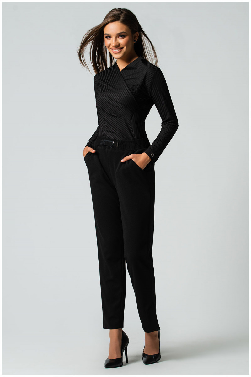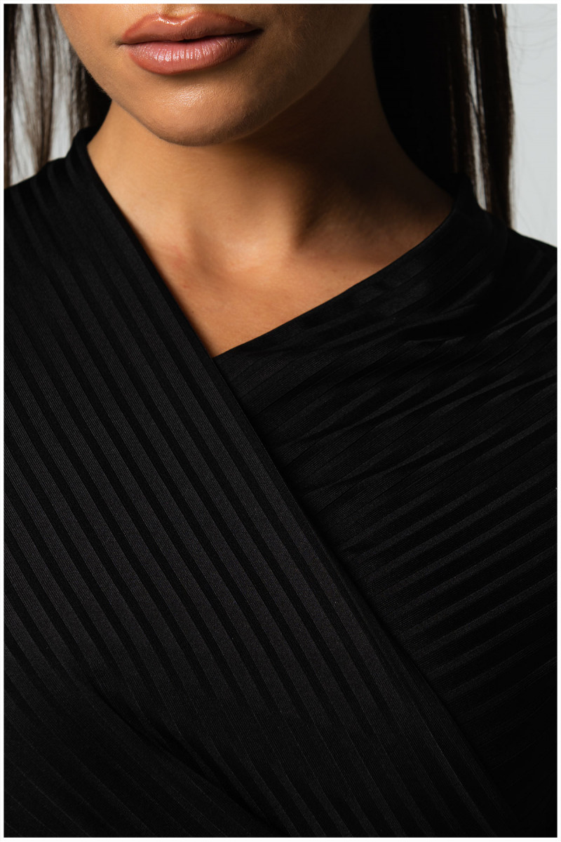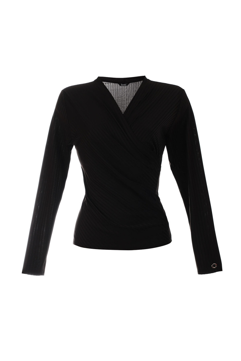 Elegantna bluza u antracit-crnoj boji preklopnog kroja sa suptilnim naborima i mekom, e...