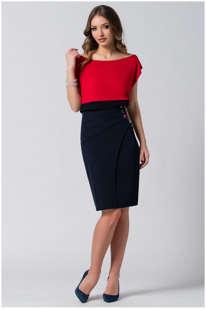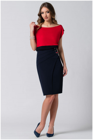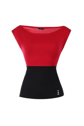 Viskozna majica u kombinaciji crvene i teget boje, odlična je za kobinovanje sa drugim modelima iz Luna kolekcije.