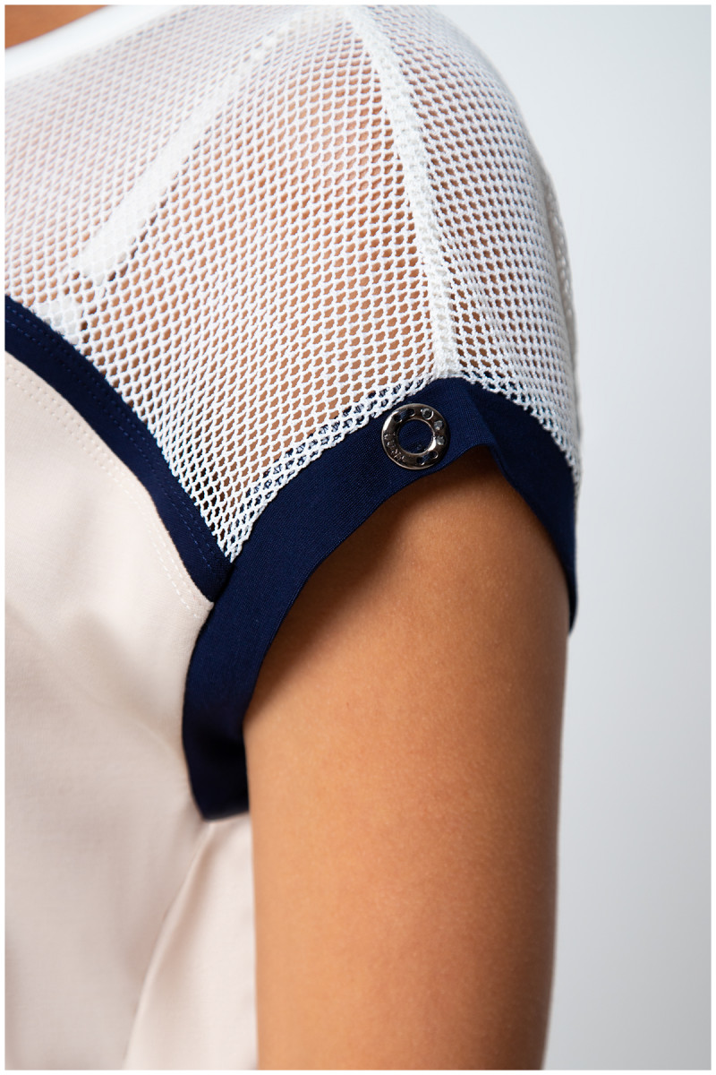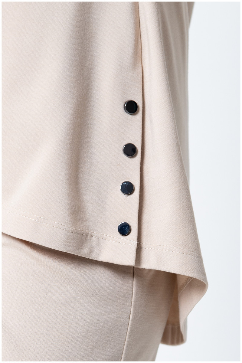 Tunika kratkih rukava izrađena od prirodnog materijala sa visokim procentom elastina. Model je klasičan i lepo se uklapa sa svim modelima suknji i pantalona. Pristaje svakoj građi tela i savršeno se uklapa u različitim outfitima.