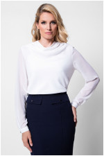 Elegantna ženstvena bluza sa blago prozirnim rukavima pogodna za svaku priliku.